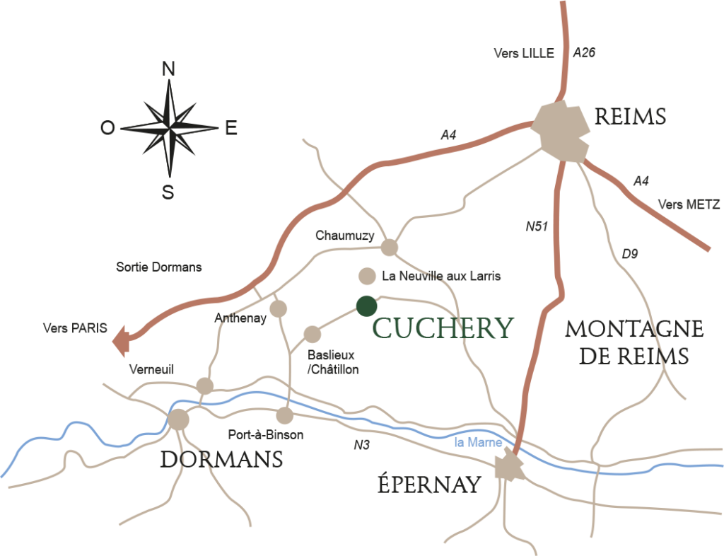 Nous serions ravis de vous accueillir dans notre domaine à Cuchery, en plein cœur de la Vallée de la Marne. Venez découvrir notre savoir-faire, déguster nos cuvées et visiter notre cave.